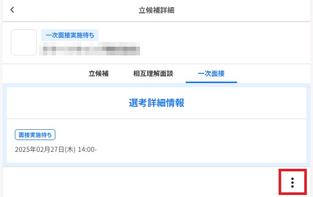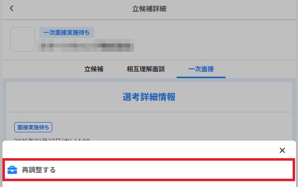 企業との面接の日程変更につきましては、「立候補詳細」画面より再調整が可能です。