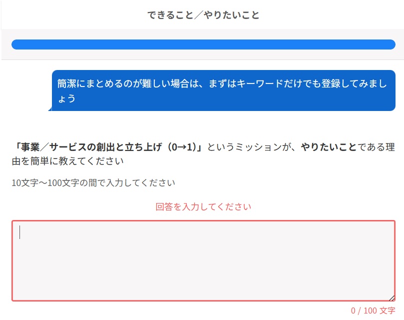 ③「できること/やりたいこと」画面3ページ目の設問のテキスト入力欄に、URLや補足情報を記載④「回答完了」を選択
