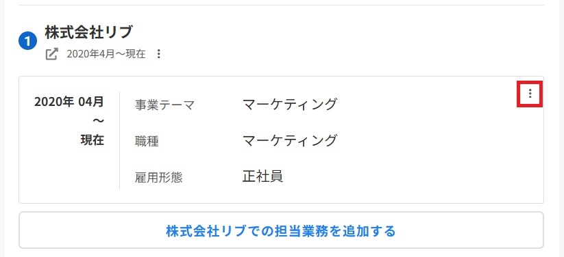③該当企業の在籍期間の表示の横にあるメニューアイコンを選択